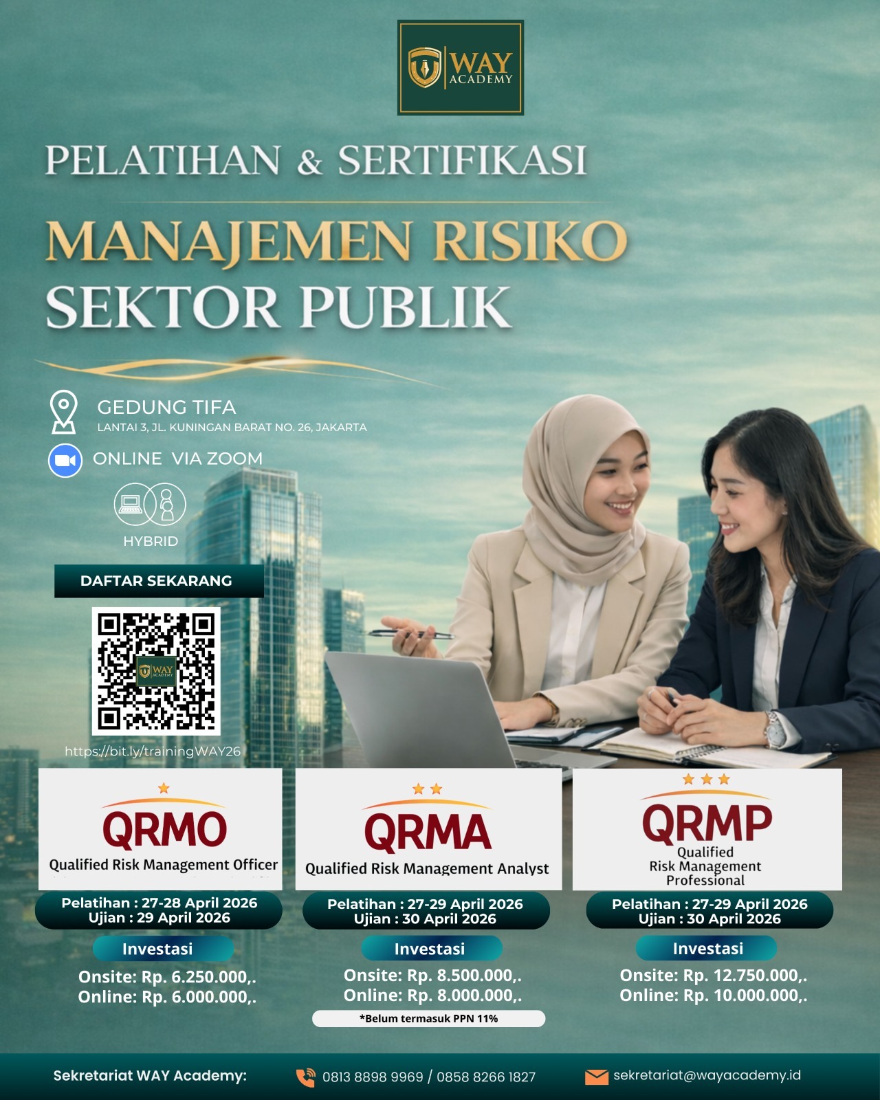 Sahabat WAY, jangan lupa catat tanggalnya dan daftarkan diri kalian untuk mengikuti pelatihan dan sertifikasi manajemen risiko dan juga kepatuhan.
